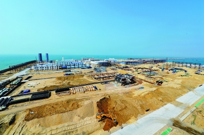 炼化工程集团五建公司承建了该工程接收站项目17个单元的施工任务。日前,大型进口设备安装完成,LNG码头卸料设施、火炬设施、LNG汽车装车设施、天然气计量外输设施、应急发电机房、全厂总平面等6个单元因受图纸材料影响正在施工,其余11个单元进入收尾阶段。