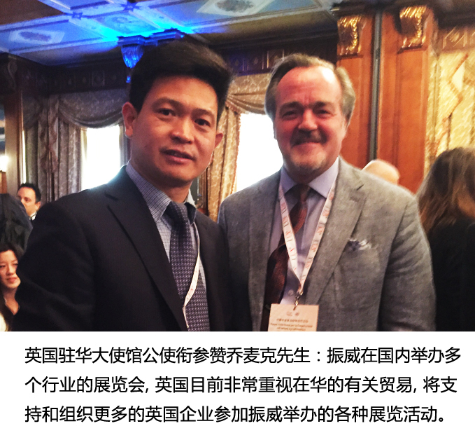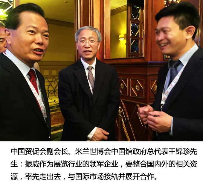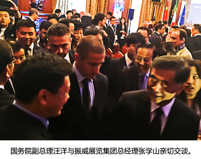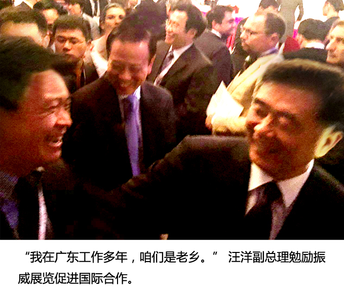 会后汪洋副总理接见了中纺集团、北京首都农业集团、振威展览集团等企业代表。当与代表们亲切握手时,听说振威展览集团总经理张学山来自广东省,汪洋副总理风趣的说,那我们算是老乡了,我在广东工作过多年,希望展会在国际交流与贸易合作中,起到桥梁和纽带作用。