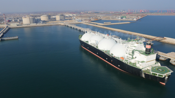 图为正在开展接卸作业的青岛LNG接收站。